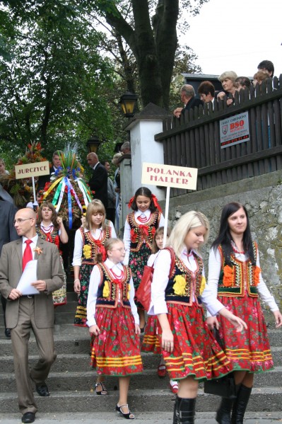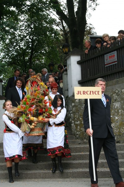 Poseł Jacek Krupa wieniec dożynkowy otrzymał od delegacji z Zelczyny