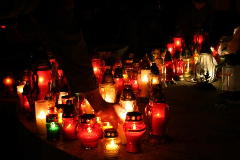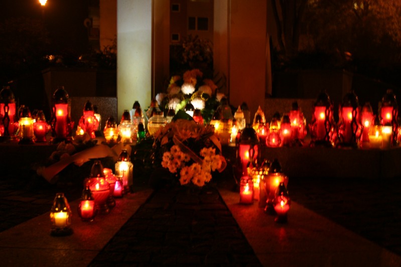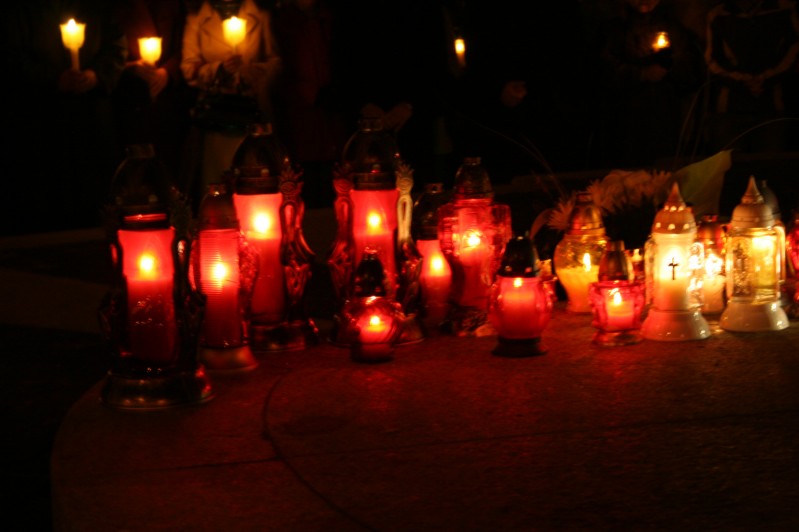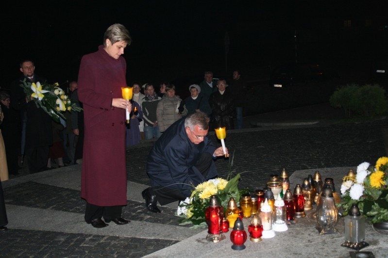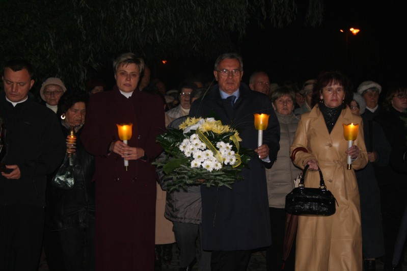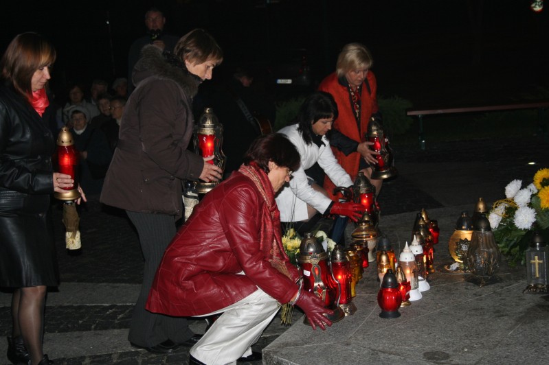 Licznie zgromadzeni mieszkańcy Skawiny składali znicze
