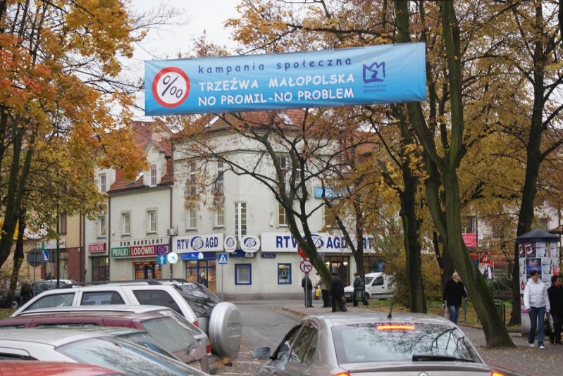 Baner promujący kampanię na skawińskim Rynku