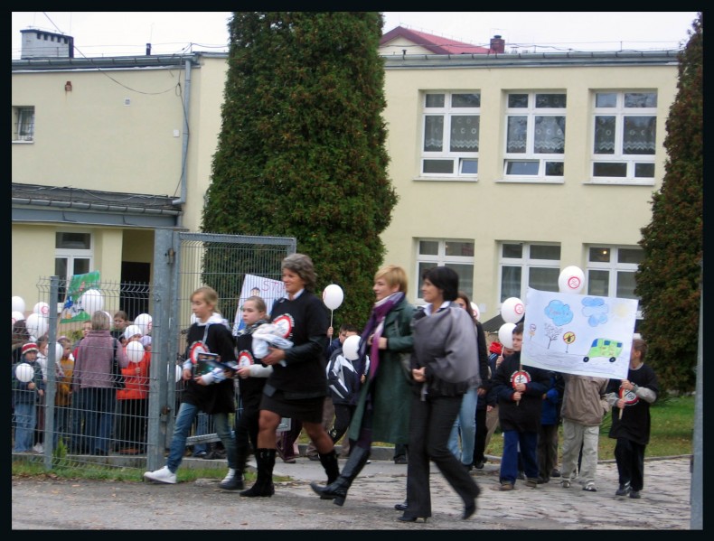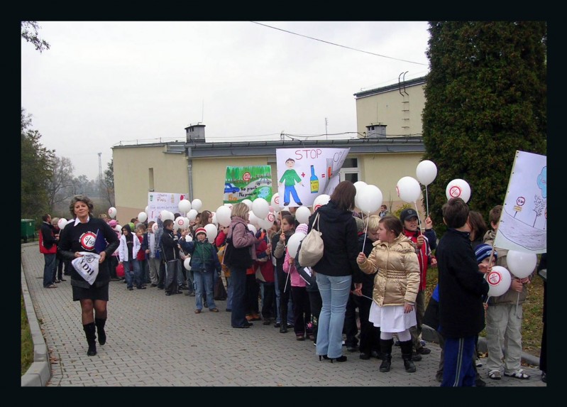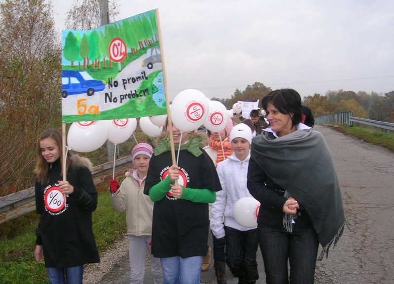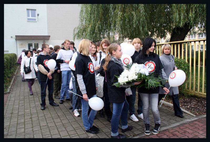 Tworzenie kolumny Białego Marszu No Promil No Problem zorganizowanego w dniu 22 października br. przez społeczność Gimnazjum Nr 2 w Skawinie