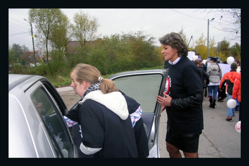Na trasie marszu przekazywano kierowcom materiały edukacyjne