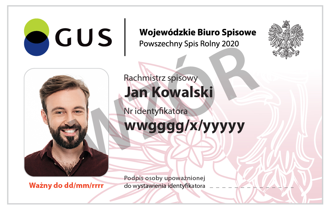 Rachmistrz spisowy legitymuje się oficjalnym identyfikatorem wydanym przez Wojewódzkie Biuro Spisowe.